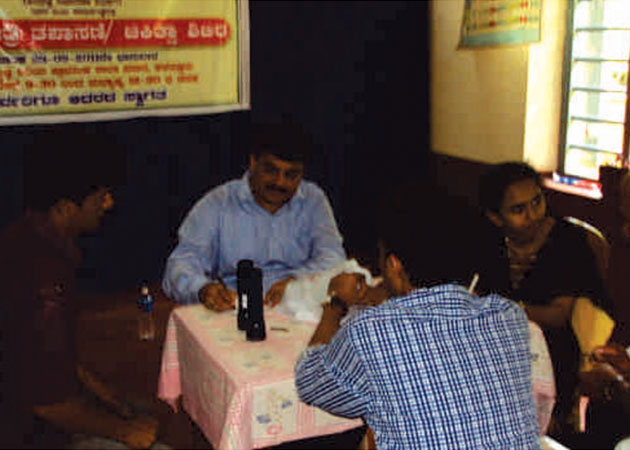Dr. Krishna Prasad carrying out a Free Eye Checkup Camp in 2011